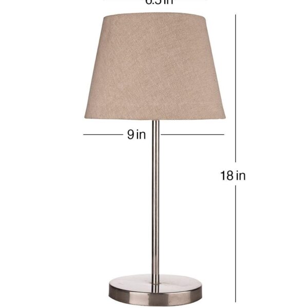 ₹1,948.00Product Type - Table Lamp Dimensions - 6.5''X9''X18'' Shade Material - Cotton Shade Color - Brown Base Material - Metal Base Color - Chrome -