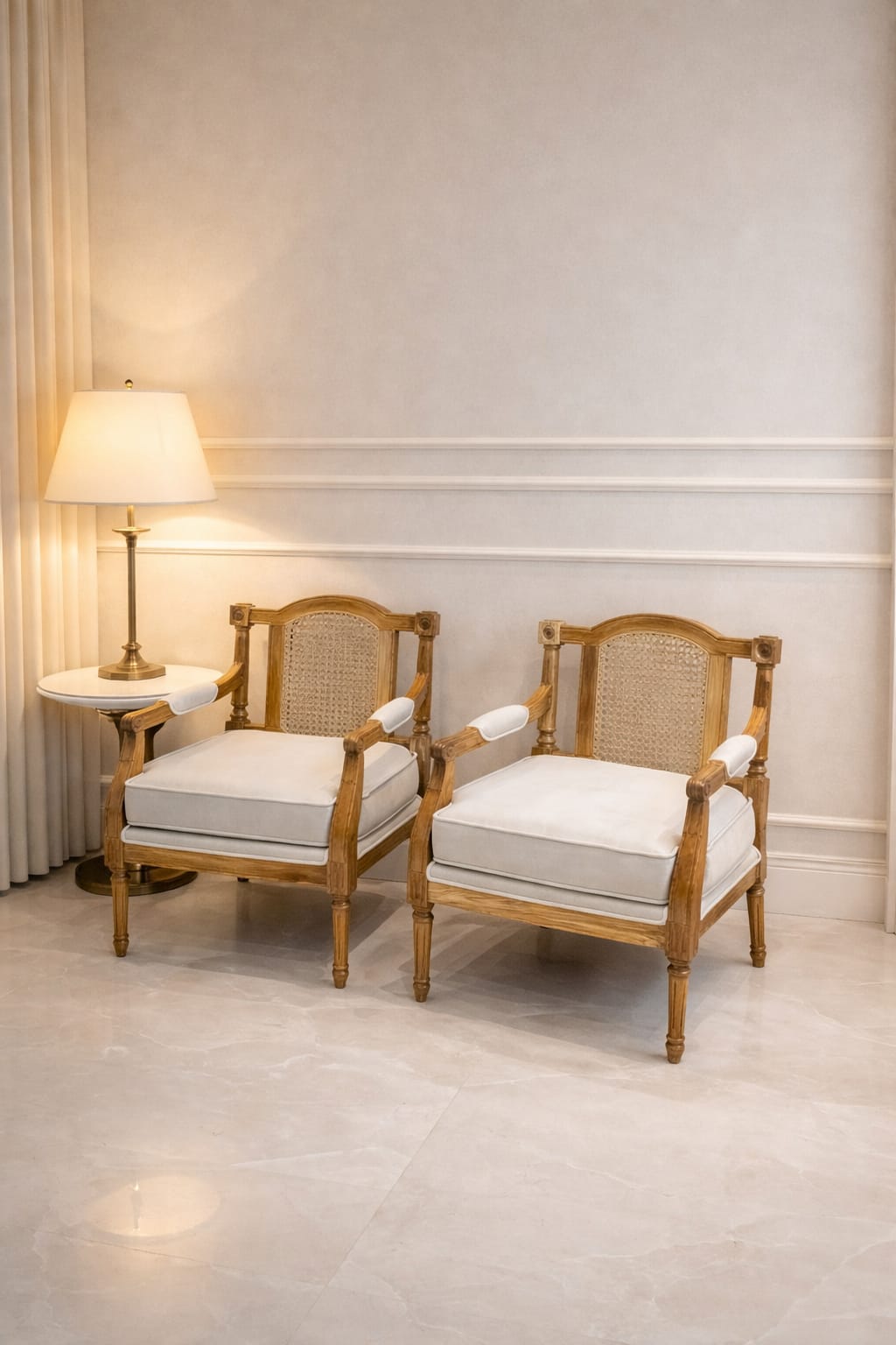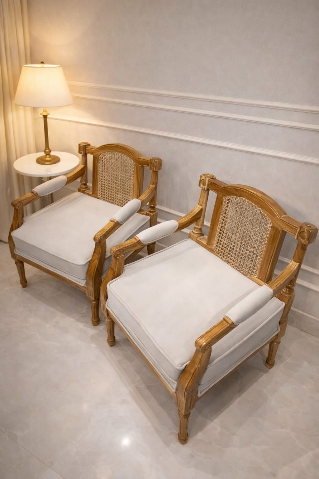 This set includes two beautifully crafted armchairs, making it perfect for creating a balanced and elegant seating arrangement in your living room, bedroom, or lounge area.