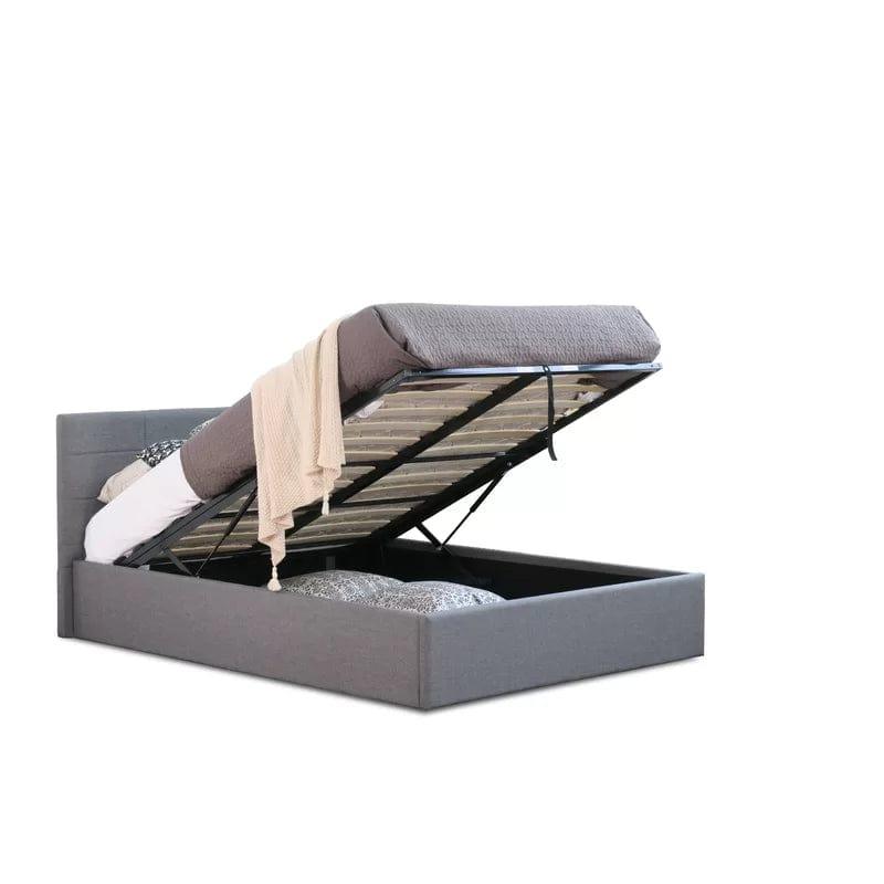 Introducing a stylish and functional bed frame that combines contemporary design with practical storage. This upholstered ottoman bed features a hi
