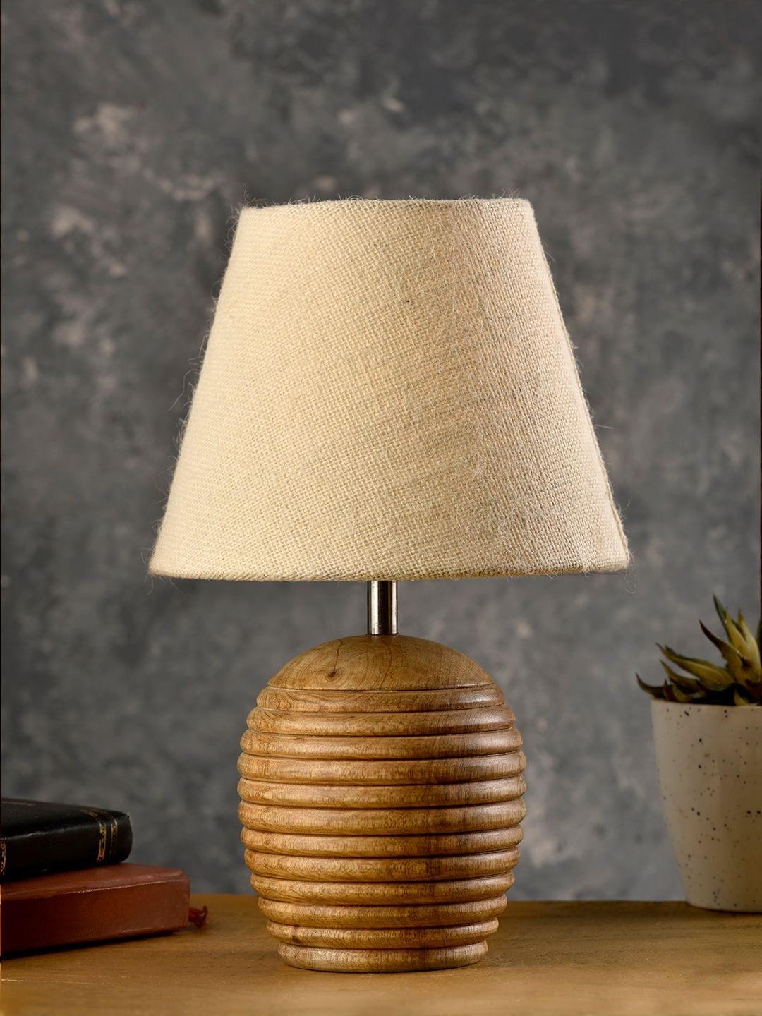 Striped Wooden Brown Lamp with White Jute Shade – 1