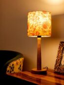 Wooden Brown Table Lamp with Birdy Shade – 1